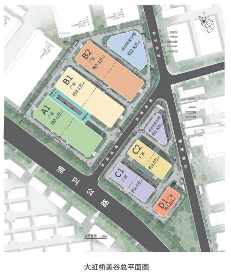 大虹桥美谷庄行产业园是以化妆品及美丽健康产业为主导,项目分两期开发建设,一期总占地141亩,总建筑面积20万平方米。北片区地块占地91亩,总建筑面积13万平方米。南片区地块占地50亩,总建筑面积7万平方米。